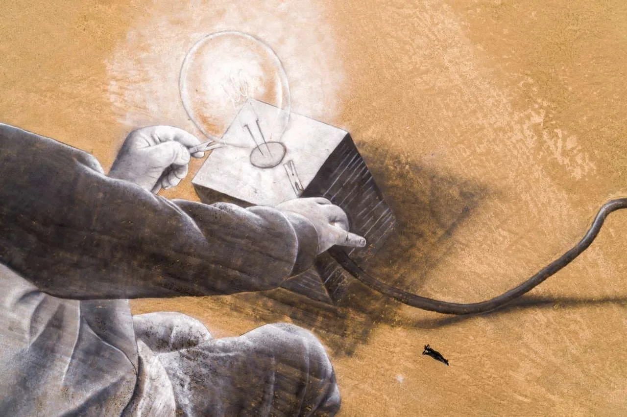Di orgini newyorkesi, l’artista David Popa, vive in Finlandia, dove ha sviluppato un modo del tutto personale di fare street-art. Realizza, infatti, dei grandi graffiti in mezzo alla natura selvaggia del nord Europa. Su scogli, campi, ma soprattutto lastre di ghiaccio alla deriva.