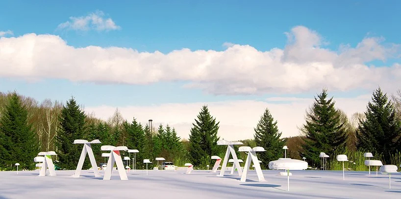 Toshihiko Shibuya prosegue ormai da 12 anni con questa serie di installazione temporanee, che dall’inizio della stagione fredda sottolineano i mutamenti del paesaggio con il loro stile minimale, in bilico tra un intervento di calligrafia tridimensionale e il design vivace di un manga o di un film d’animazione. Lo scopo dell’artista è quello di realizzare progetti che celebrino la natura, riducendo il più possibile il proprio intervento.