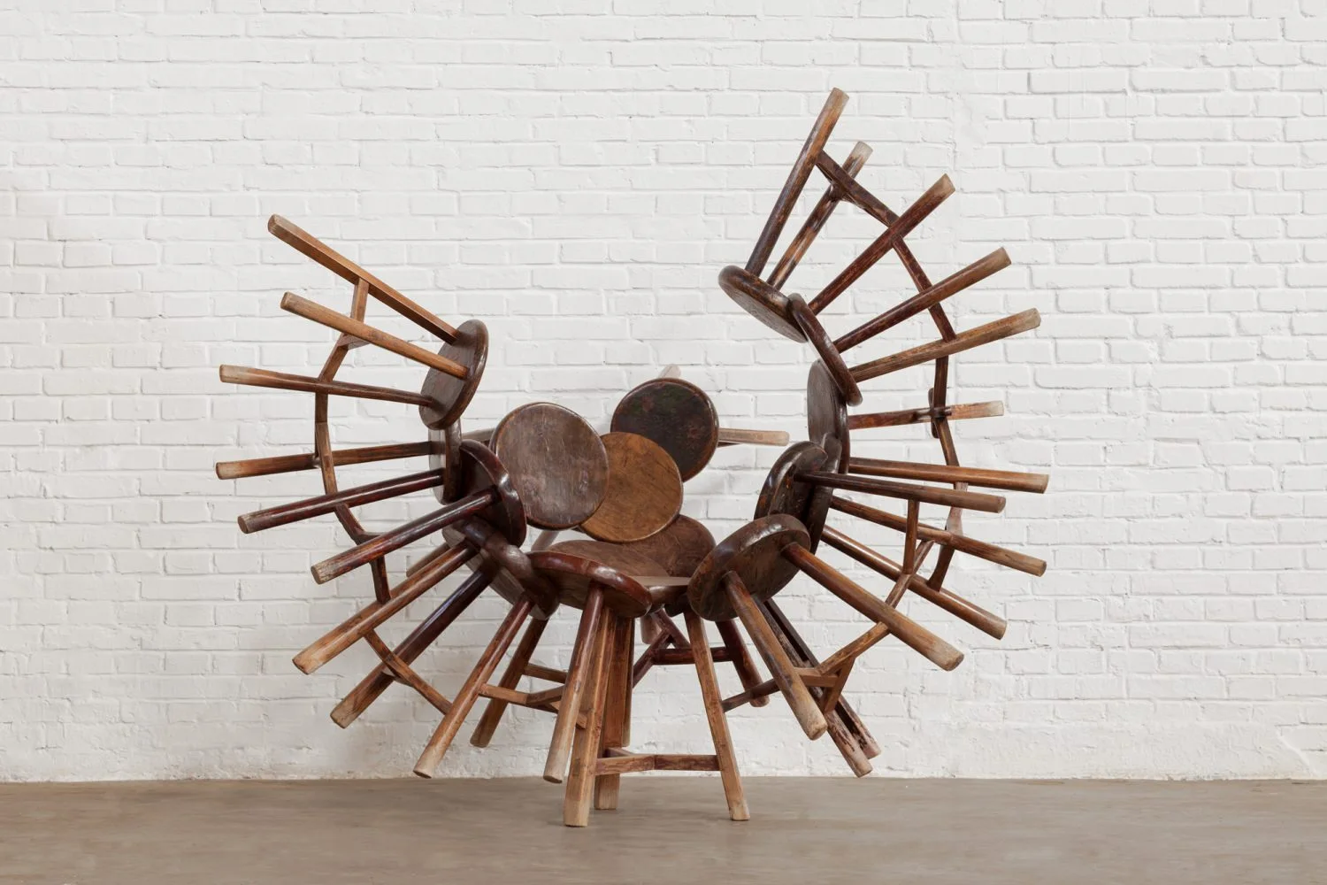ai weiwei, "grapes", 2013, scultura composta con 34 sgabelli della dinastia Qing (1644-
