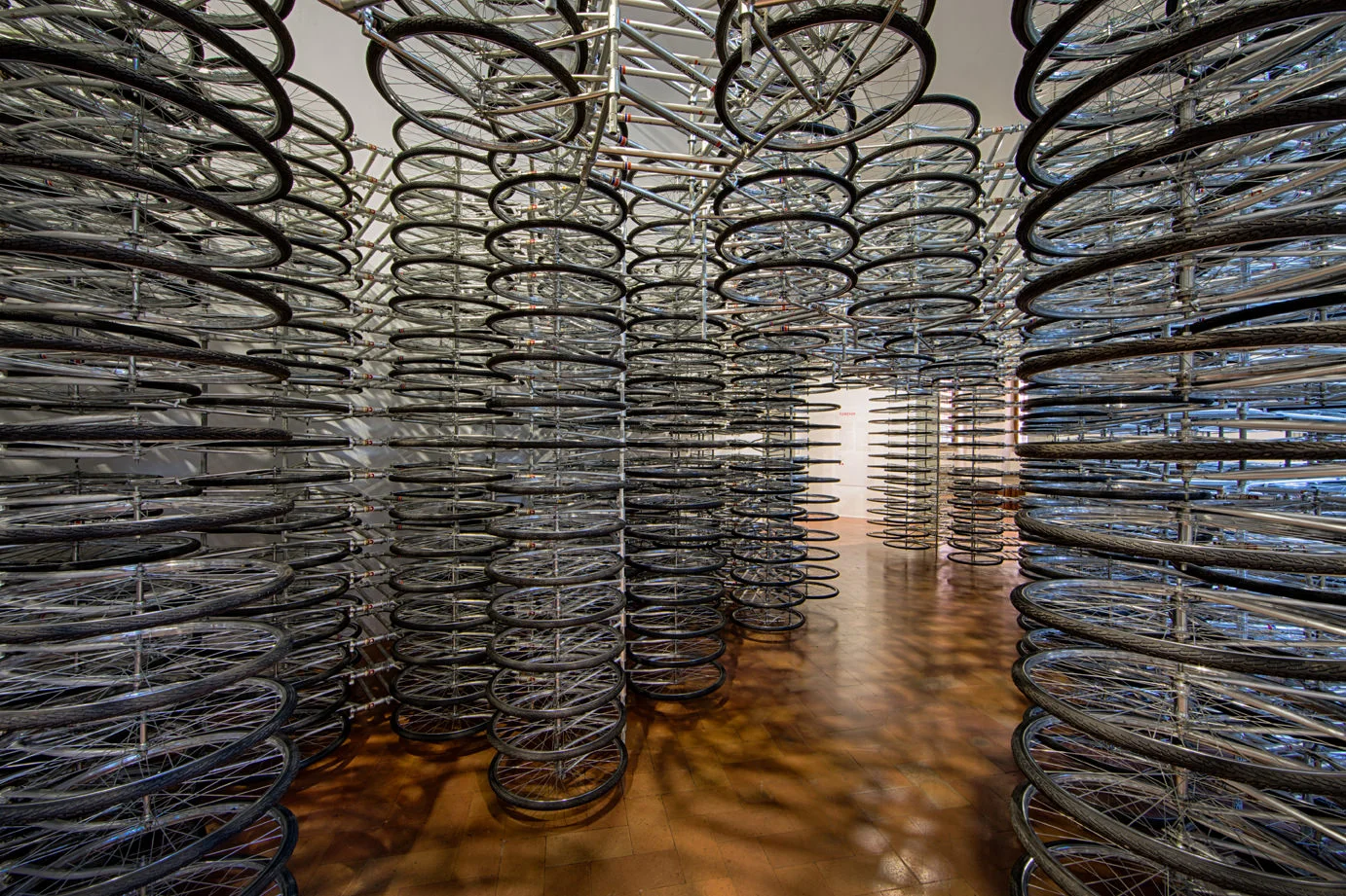 ai weiwei, "stacked", 2012, installazione in biciclette, acciaio e gomma, courtesy ai weiwei studio galleria continua, san gimignano/beijing/les moulins/habana