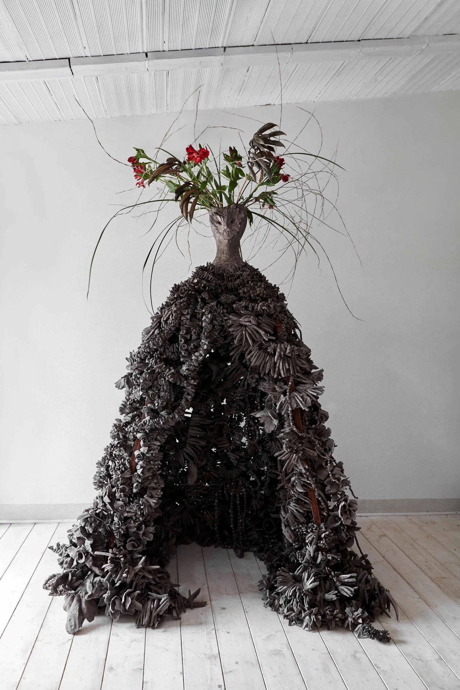 Chiara Camoni, Sister (Capanna), 2022 (particolare) Ferro, terracotta nera, fiori freschi e fiori secchi 220 x 140 x 150 cm Courtesy l’artista Nicoletta Fiorucci Collection Foto Camilla Maria Santini