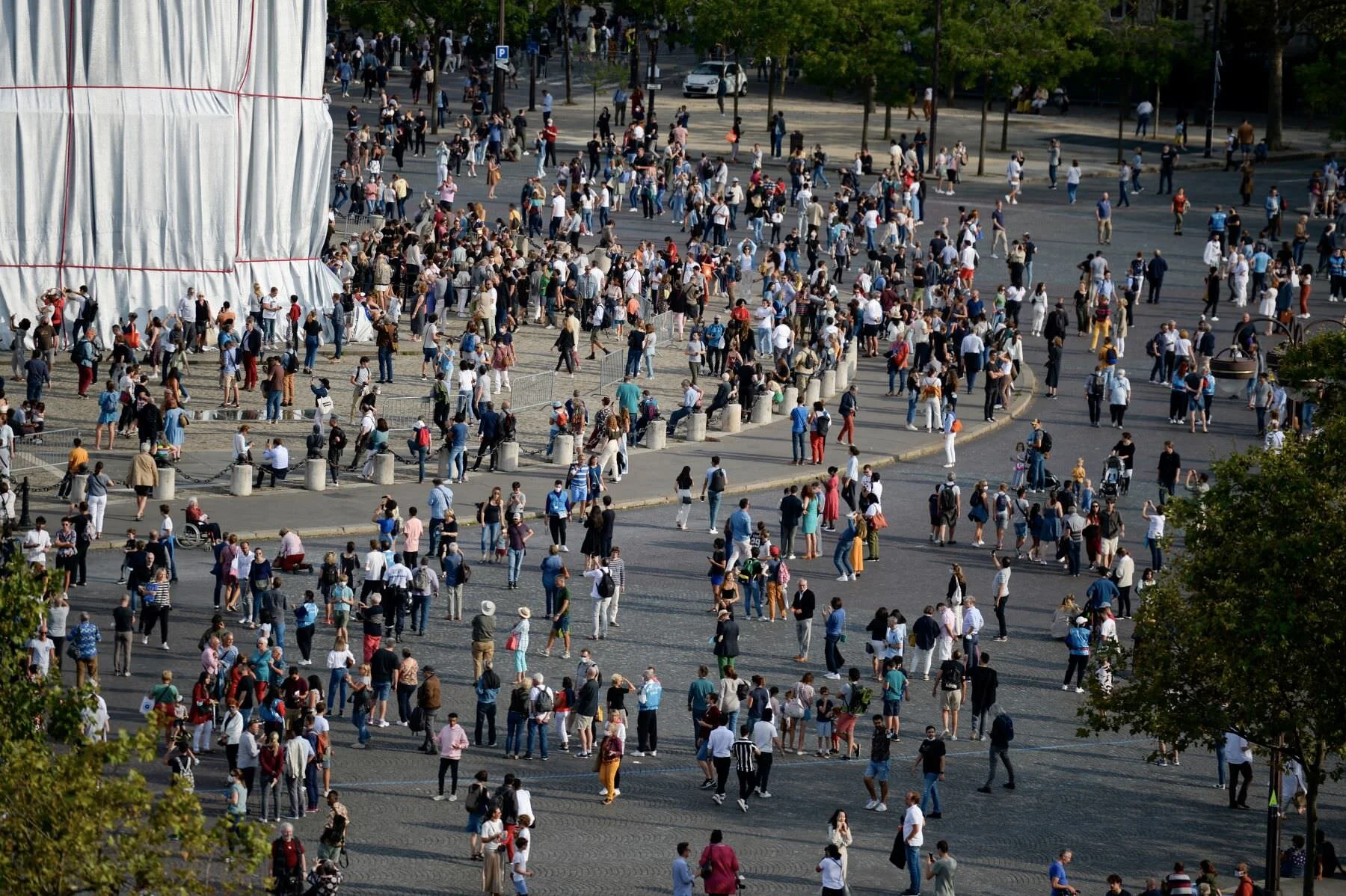 Christo and Jeanne-Claude, L'Arc de Triomphe, Wrapped, Paris, 1961-2021. photo: Wolfgang Volz ©2021 Christo and Jeanne-Claude Foundation