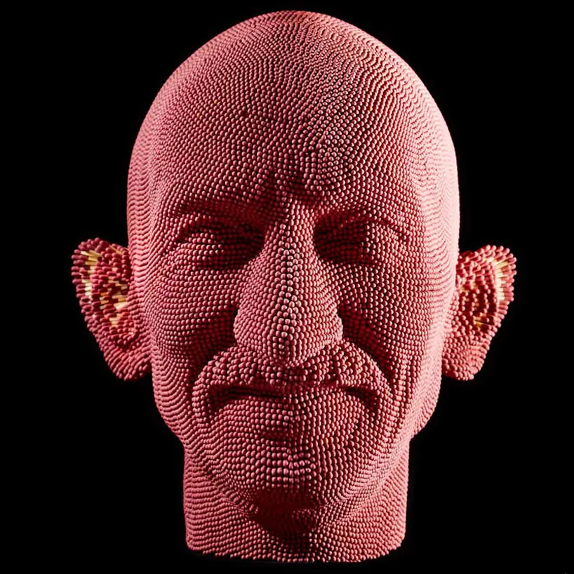 ‘picasso’, 2007 by david mach scultura di fiammiferi parte della serie‘matchead’ (foto designboom)