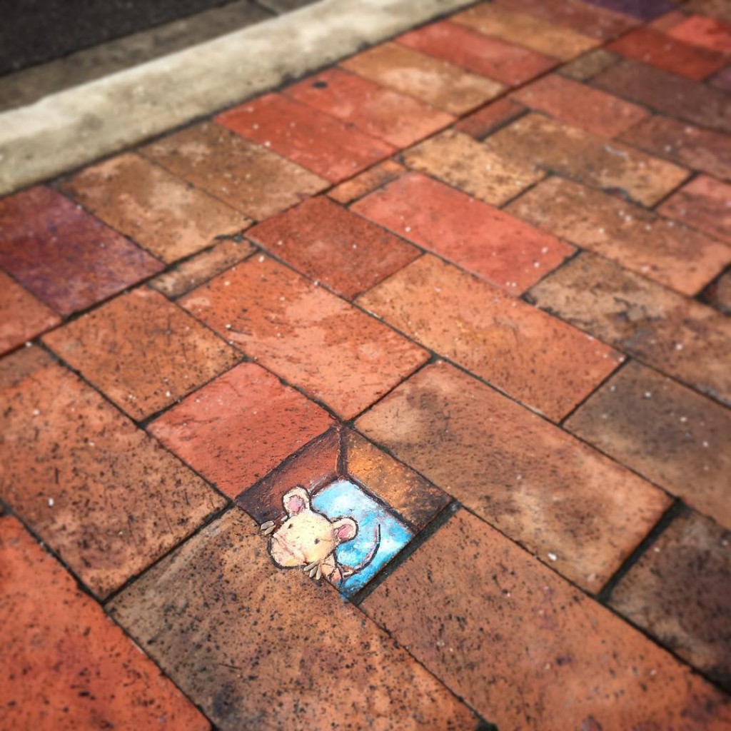 Nelle strade della cittadina universitaria di Ann Arbor, nel Michigan, tutti i giorni c’è una nuova avventura da osservare. Merito della fantasia dell’ illustratore David Zinn. E ad Ann Arbor basta aguzzare lo sguardo e in un muro può comparire un maialino volante, o tra le foglie secche, sul selciato, un pesce e un topolino in barca.