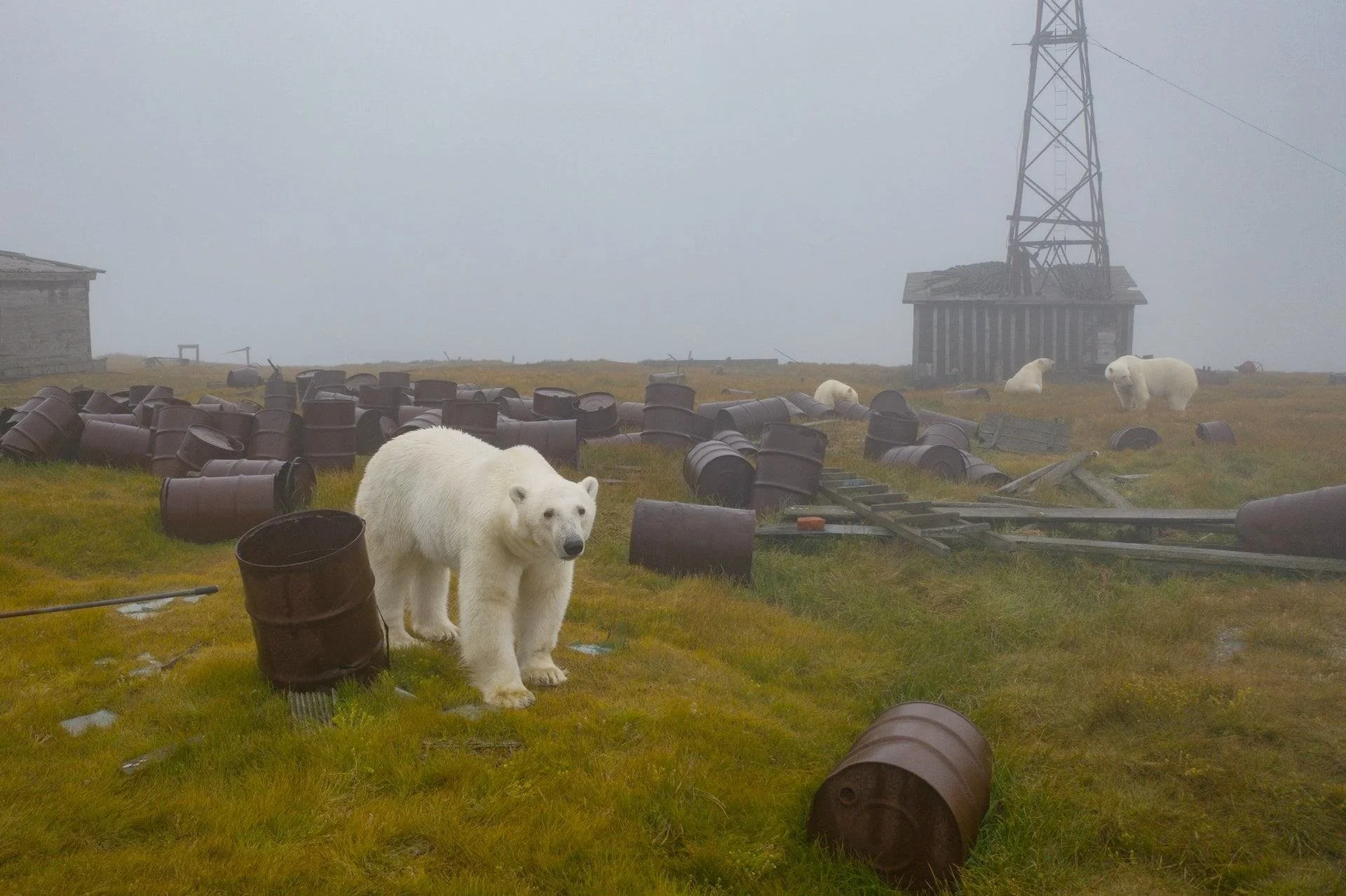 L’isola di Kolyuchin, completamente ricoperta dalla tipica vegetazione della tundra, misura appena 4 chilometri e mezzo in lunghezza mentre non supera neppure il chilometro e mezzo in larghezza. A nord ci sono le tracce di un insediamento temporaneo di cacciatori di trichechi ma in genere sull’isolotto non abita nessuno. Tuttavia non è sempre stato così., negli anni ‘30, in un periodo di sviluppo della zona, vi era stato eretto un centro metereologico che venne abbandonato negli anni ‘90. Ed è lì che Kokh ha incontrato e fotografato gli orsi bianchi