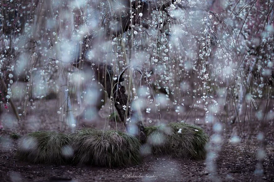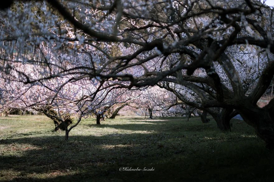 Il fotografo giapponese, Hidenobu Suzuki, ha scattato questa serie di belle immagini, per cogliere lo spirito della primavera nell'isola dell'estremo oriente. Sono foto di pruni in fiore.