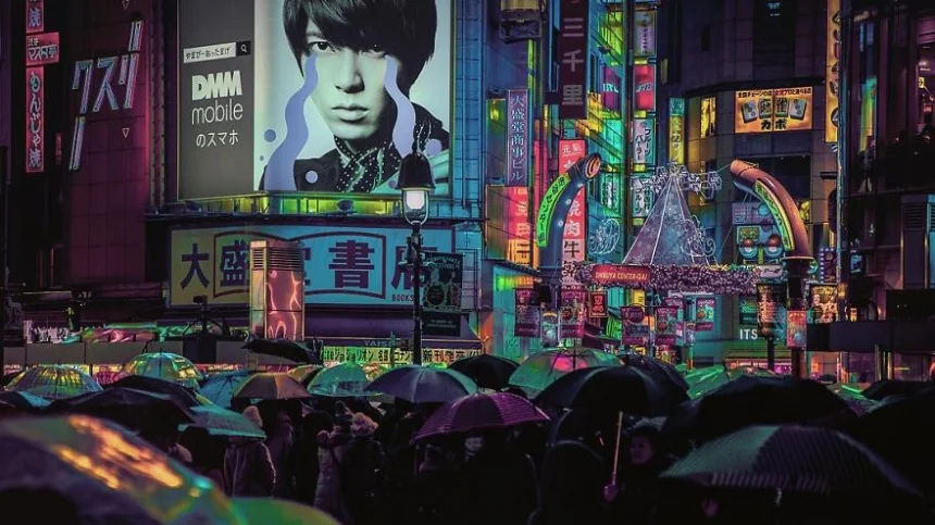 La Tokio sotto la pioggia battente di Wong, pullula di vita. Migliaia di ombrelli resi uguali dall’oscurità, procedono sotto le luci innaturali delle insegne al neon, verso i punti di ritrovo. O si discostano dal gruppo e, subito, sembrano irrimediabilmente perduti negli anfratti della notte. Il modo in cui la città si illumina, sembra davvero tramutarla nel set di un film di fantascienza.