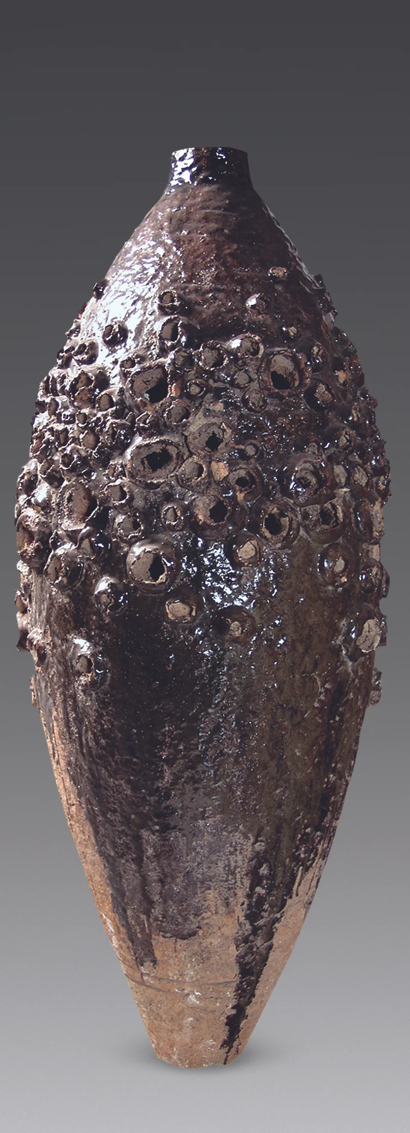 I vasi sono anche il luogo in cui l’artista riversa forse con una maggior libertà la sua fantasia. E così, grumosità lucenti, da semplici texture tramutano le ceramiche nei tentacoli di una piovra o in contenitori misteriosi dotati di una vita propria.