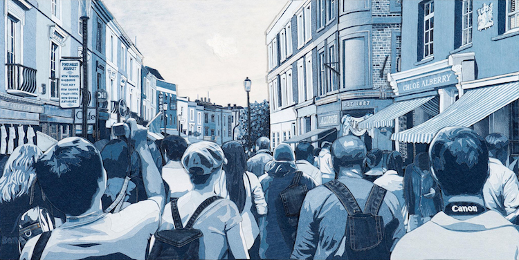 “A prima vista, molti credono che si tratti di fotografie sui toni del blu o dipinti ad olio declinati in indaco -spiega Ian Berry sul suo sito internet - Non accade soltanto se le persone vedono il lavoro online o stampato, quando gran parte della profondità e del dettaglio è andato perduto, ma anche se lo osservano da vicino. Semplicemente molti spettatori non si rendono conto che stanno guardando tanti strati, e sfumature, di jeans.”