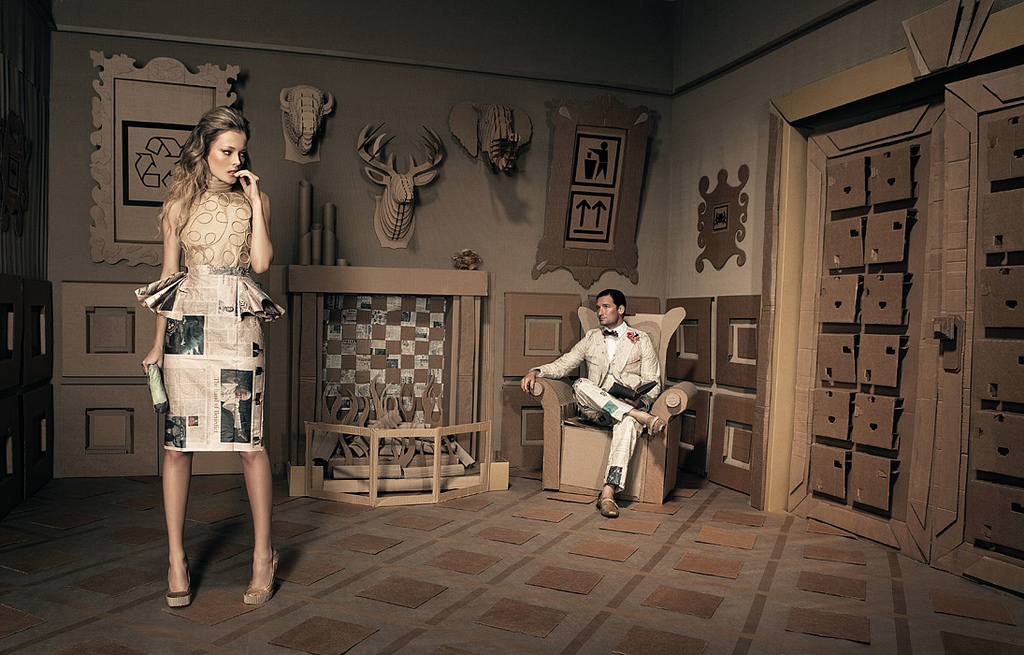 E fin qui non ci sarebbe nulla di strano. Non fosse che Cristobal Valecillos insieme al suo staff costruisce tutto, dai costumi alla scenografia, con i rifiuti. Vecchi cartoni diventano piastrelle o teste di cervo appese a parete, le tazze usate di Starbucks un abito e un importante copricapo.