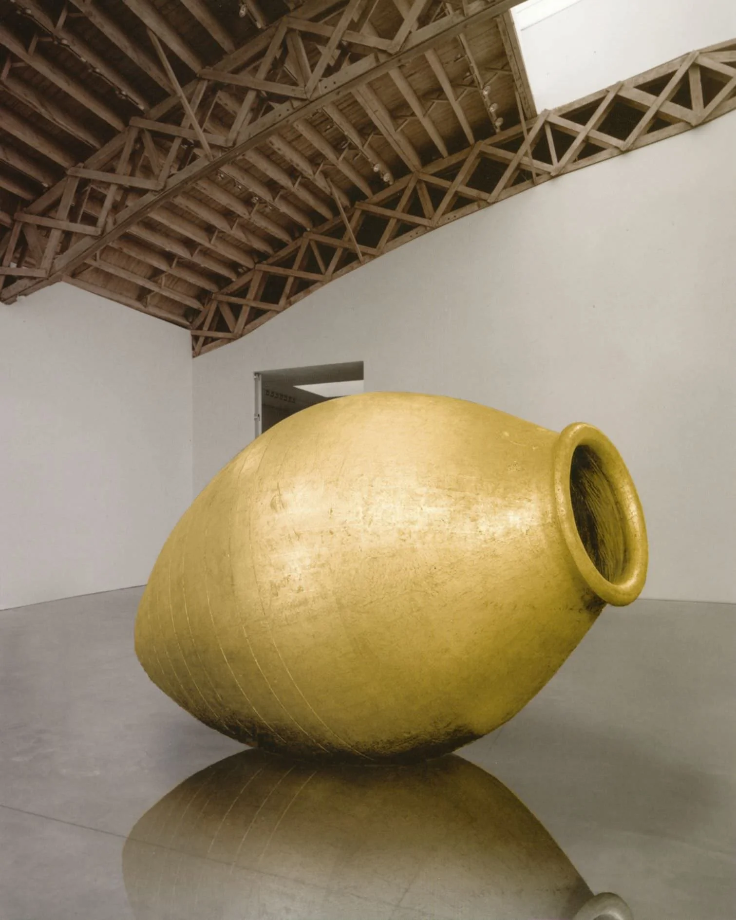 James Lee Byars The Spinning Oracle of Delfi, 1986 Anfora dorata 195 x 195 x 320 cm © The Estate of James Lee Byars, courtesy Michael Werner Gallery, New York e Londra © The Estate of Lothar Schnepf