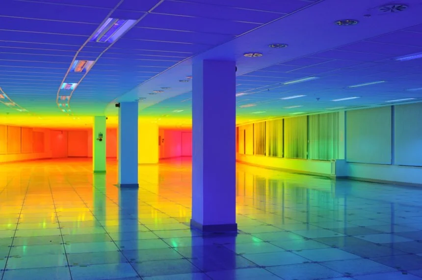 Cosa proverebbero le persone se avessero la possibilità di andare a spasso nell’arcobaleno? Sembra una domanda bizzarra ma l’artista inglese Liz West (di cui abbiamo parlato precedentemente: qui) se l’è posta. E proprio da questo quesito nasce l’opera: “Our color perception”. La nuova grande installazione immersiva in cui si è recentemente cimentata Liz West, anche questa volta ha come protagonista la luce pura dello spettro cromatico. E il suo rifrangersi, solo apparentemente casuale, fino ad avvolgere il visitatore. “Our color perception”, inoltre, (come altri lavori della West) dialoga con lo spazio architettonico che la ospita. Assecondando le sue linee fluide e pulite.