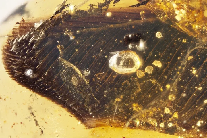 Un gruppo di ricercatori, ha scoperto e salvato, un pezzo d’ambra contenente una copia di ali d’uccello preistoriche, risalenti al periodo cretaceo. Che stava per essere trasformata in un ciondolo da uno zelante designer cinese.