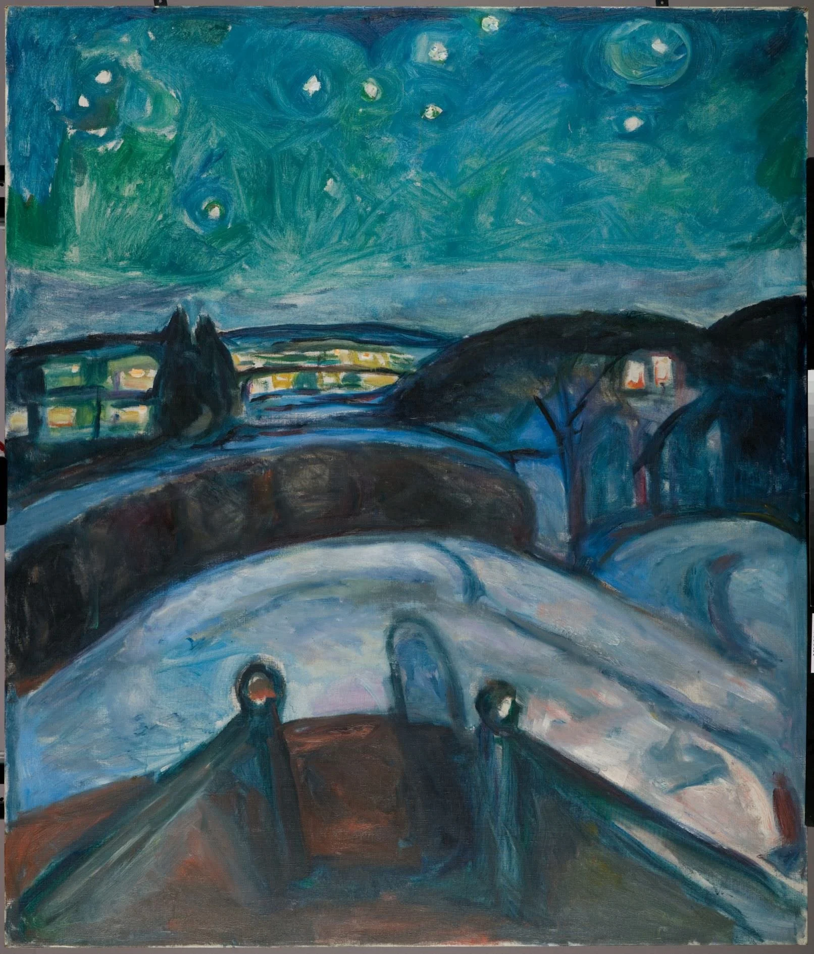 Edvard Munch Starry Night, 1922–1924 Oil on canvas,140 x 119 cm Munchmuseet, Oslo Photo: Munchmuseet / Halvor Bjørngård
