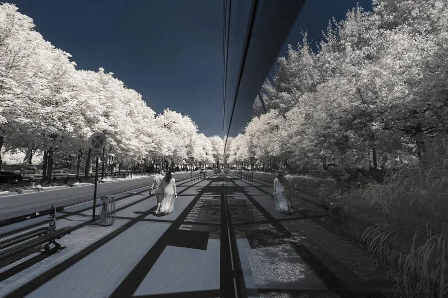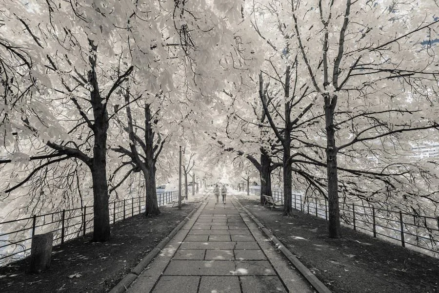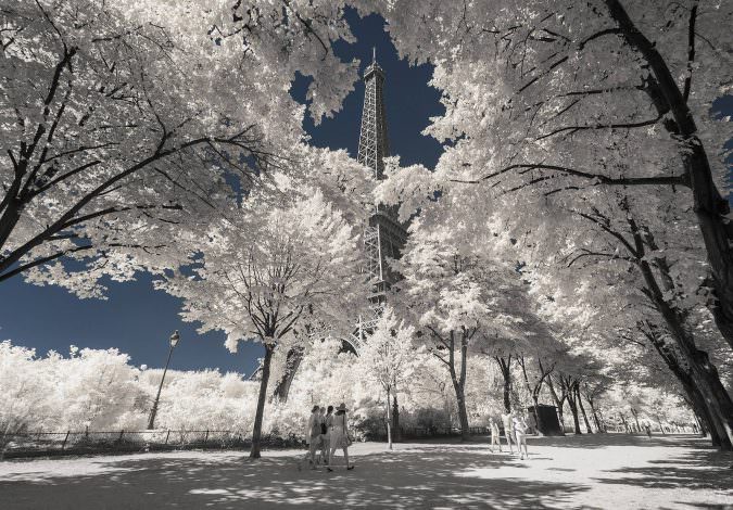 La serie di immagini “Paris invisible” del fotografo francese Pierre-Louis Ferrer usa gli infrarossi per mettere in scena una città affascinante. Fermata in un tempo irreale, che di volta in volta, sembra nel pieno di una primavera ricca di alberi in fiore, o di un’estate sfavillante in cui la luce del sole è così intensa da rendere bianchi gli edifici, o in un inverno nevoso.