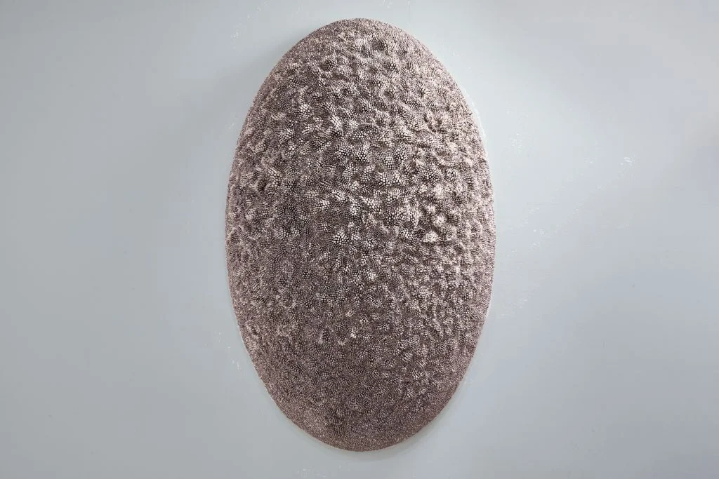 L’artista, che in passato ha creato sculture da indossare e si è servito spesso di piume e scampoli di pelle, ha adottato questo materiale per la bellezza ma anche perché le conchiglie sono state spesso usate come moneta. Insomma, secondo Rowan Mersh sono in grado di evocare il concetto di valore e la sua natura arbitraria.
