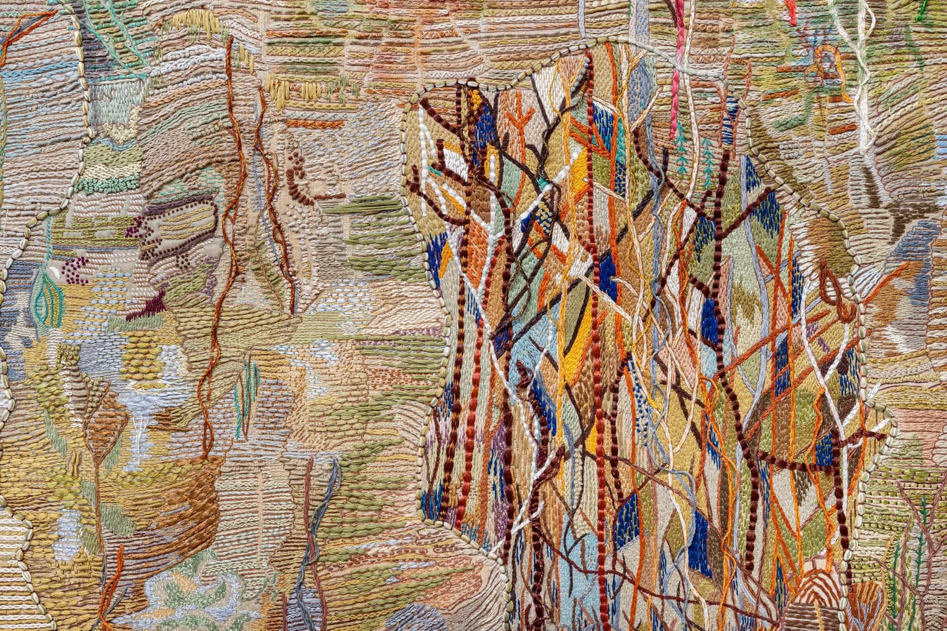 Jospin si dedica poi a complessi ricami colorati, che prendono spunto dagli antichi arazzi ma anche dalla pittura dei Nabis e di Édouard Vuillard. A disegni a china, che sono un fiorire cadenzato di segni. Ma pure a sculture che evocano le stratificazioni della roccia, rese modellando cemento e gesso (qui vuole evocare l’architettura degli uomini della pietra o semplicemente la materia erosa dagli elementi). In tutte queste opere comunque, l’artista, abbandona la figurazione per strizzare l’occhio all’astrattismo.