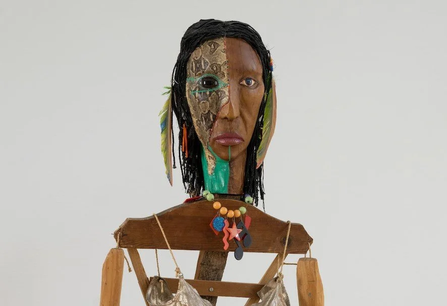 “Malinche” una delle sculture iconiche di Jimme Durham. Che ritrae la donna indigena che fu schiava e amante di Hernán Cortés. Tutte le fotografie courtesy Madre