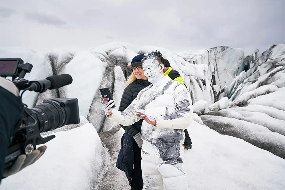 Infatti, quella fotografia di Liu dipinto dalla testa ai piedi nei colori del paesaggio scattata da anne leibovitz tra i ghiacciai islandesi ha attirato l’interesse dei giornali di tutto il mondo. E difficilmente avrebbe potuto passare inosservata