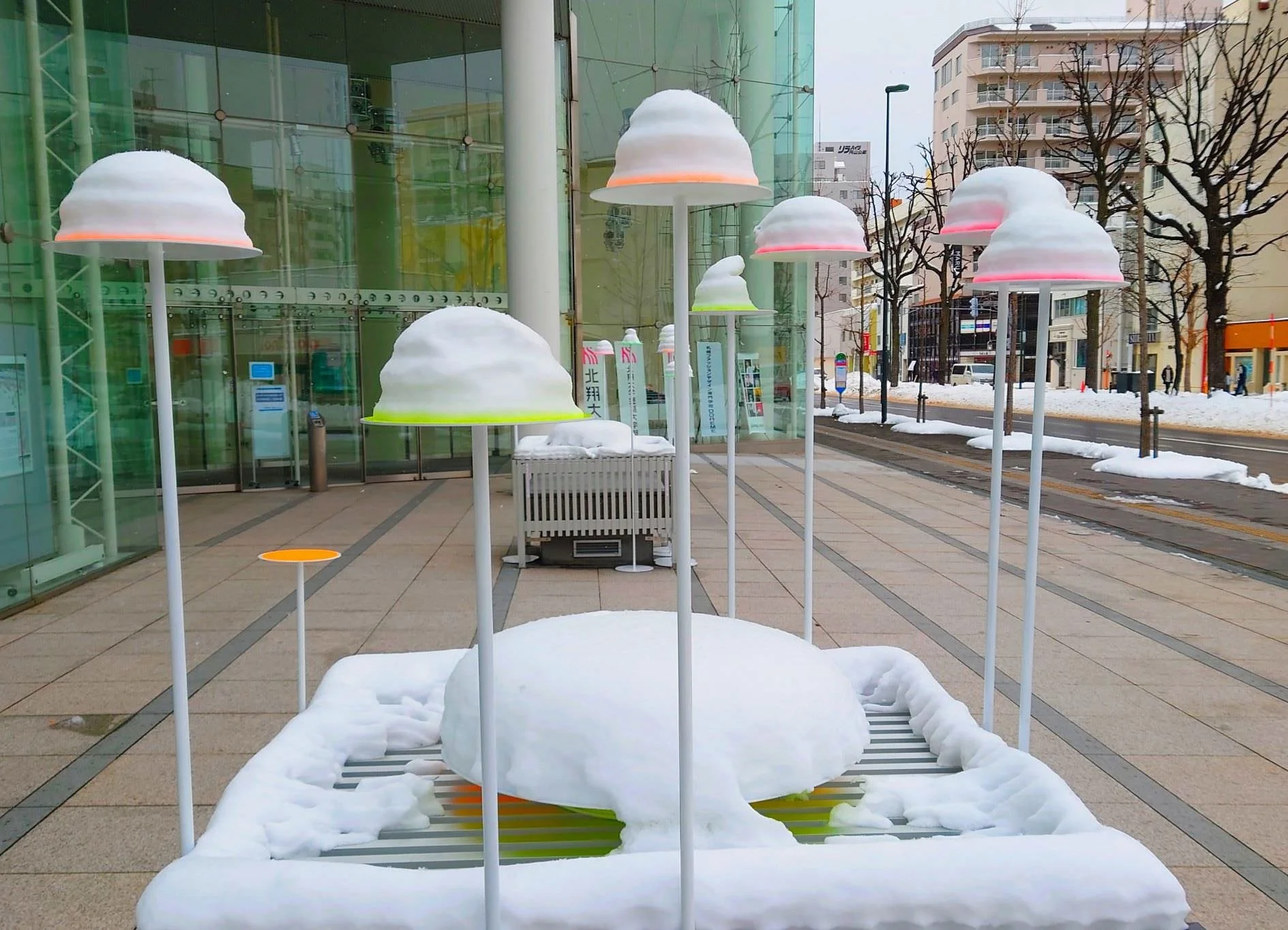 Siamo a Sapporo, capitale della montuosa isola di Hokkaido, nell’estremo nord del Giappone (da Capo Sōya, nella parte più a nord dell’isola, la Russia dista solo 43 chilometri), dove la neve cade copiosa ogni anno (anche se ultimamente meno di prima). Il susseguirsi delle stagioni, lì non ha chiaroscuri, e le persone associano i loro ricordi al mutare del paesaggio più che altrove; anche e soprattutto durante l’inverno con la sua spessa coltre bianca, capace di trasformare ogni scorcio. Ed è qui che Toshihiko Shibuya concepisce un’installazione ricorrente che ripete ogni anno. Più o meno uguale a se stessa, sempre nello stesso periodo, da ben 17 anni ormai.