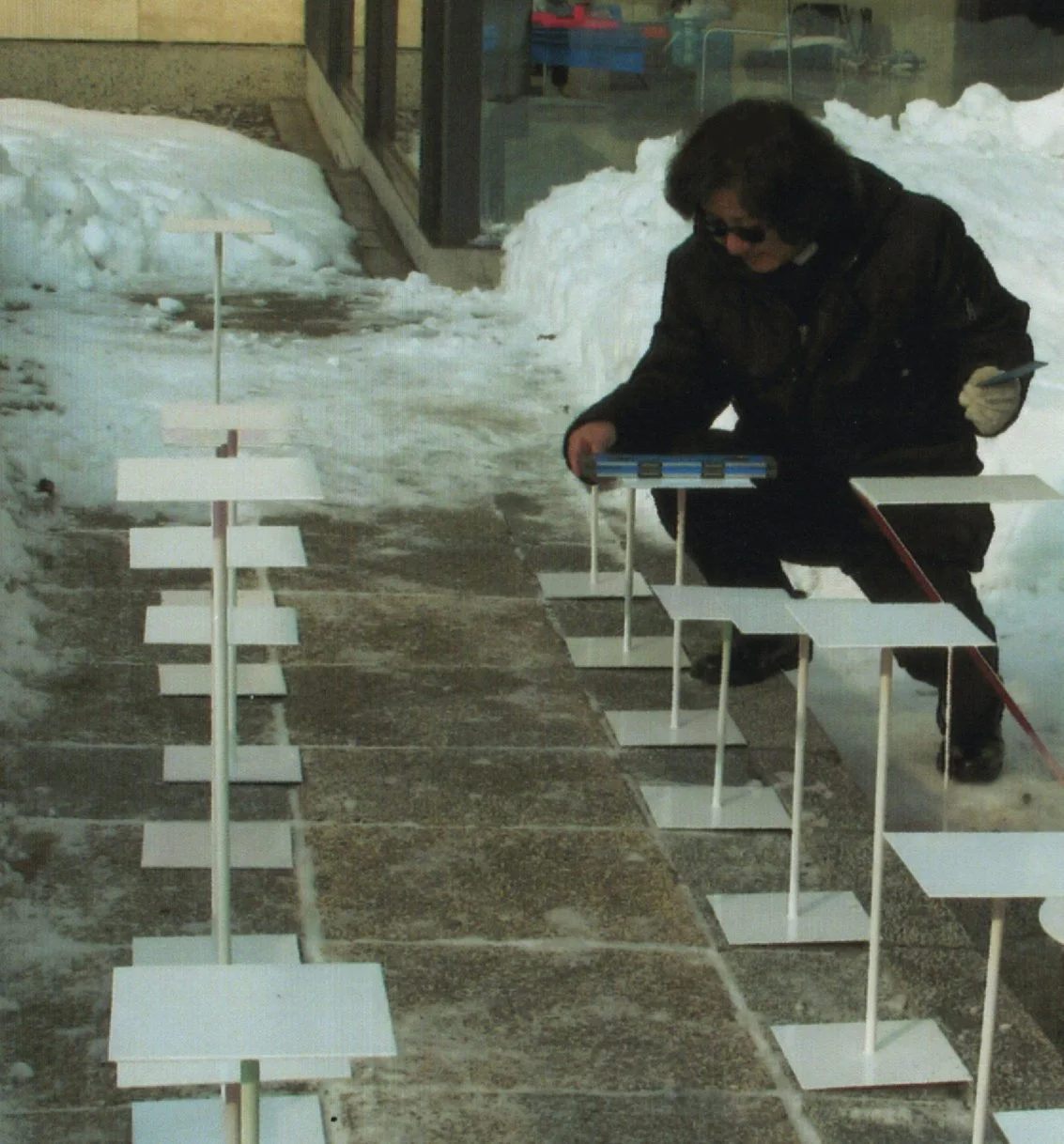 Shibuya colloca le piattaforme che compongono la sua famosa installazione scultorea invernale