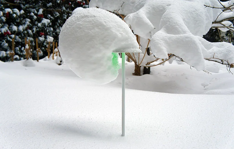 Sembrano grandi caramelle o ghiaccioli colorati e invece sono solo cumuli di neve caduti su un’ installazione dell’artista Toshihiko Shibuya. L’arancione allegro, il rosso anguria, il verde lime e il rosa confetto non sono altro che riflessi della luce irradiata dal pallido sole invernale.