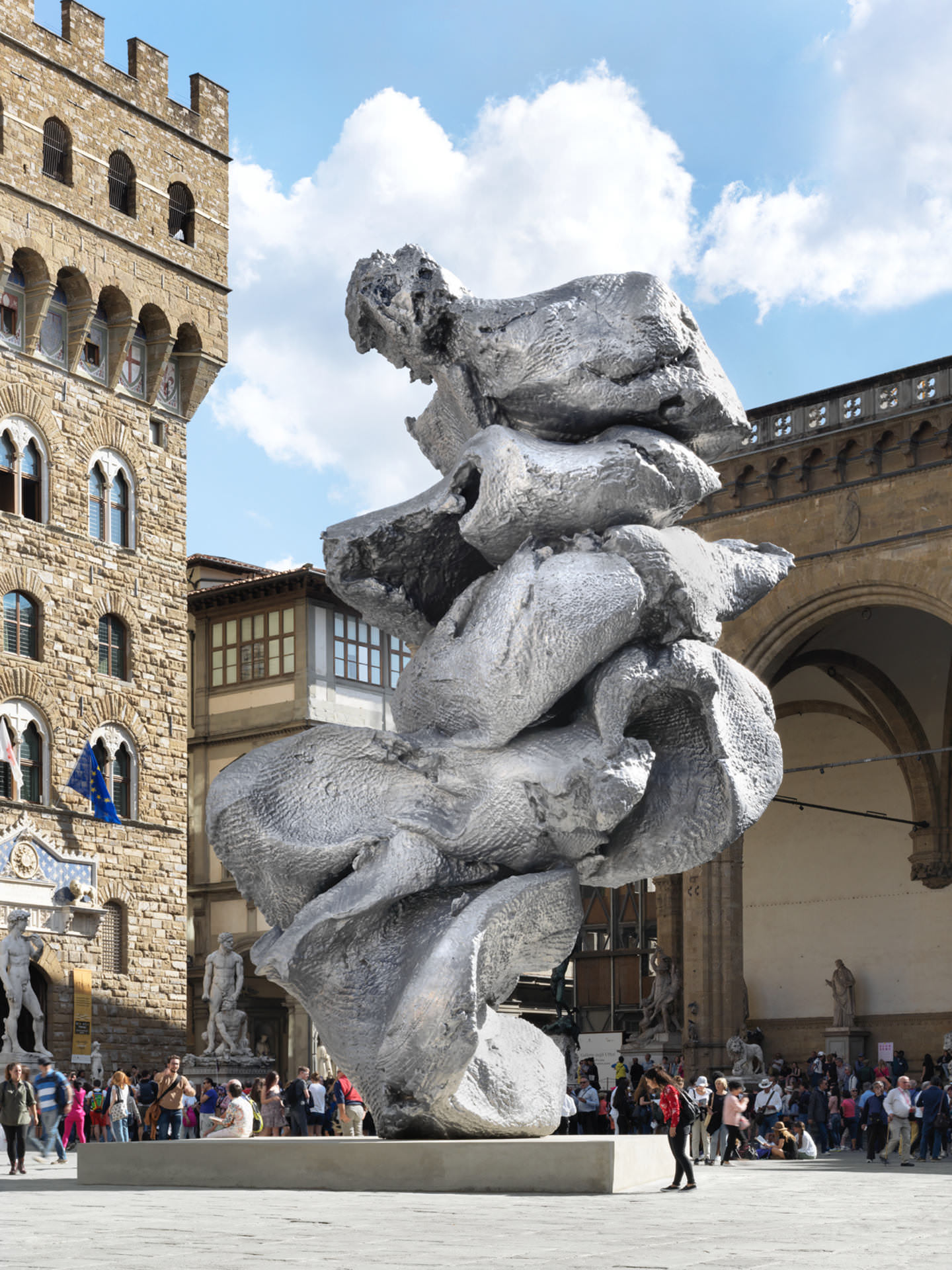 Ci sono due ritratti iperrealisti in cera con tanto di stoppino, destinati a sciogliersi alla fine della mostra e un gigantesco monumento astratto in metallo alla creatività. 'In Florence' (a cura di Francesco Bonami) è un grande evento di arte pubblica firmato da Urs Fischer, che dopo Jeff Koons e Jan Fabre ha occupato Piazza della Signoria con delle opere che fanno discutere. Ma non solo, perché stavolta hanno fatto anche il botto.